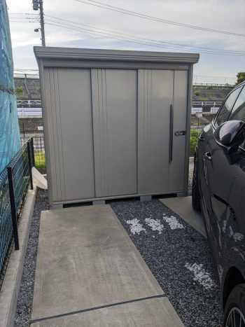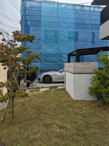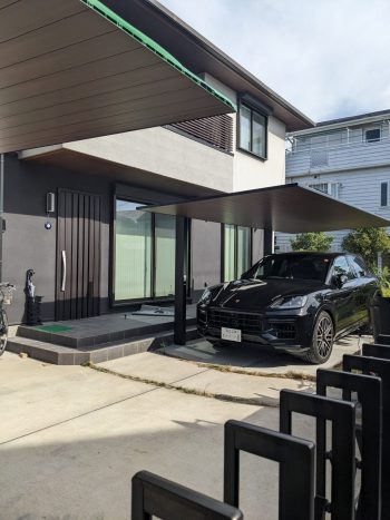 江戸川区でリフォーム工事を得意とする有限会社イシダインテリアです。今回は駐車スペース狭くしていた物置を移動させてからのカーポート設置の工事を致しました。停まっている車が更に映える高級感ある仕上がりとなりました。