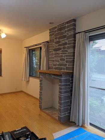 江戸川区で内装リフォーム工事を得意とする有限会社イシダインテリアです。システムキッチン工事とリビングルームの床材の張替え暖炉風の造作物の撤去、壁クロス貼替え工事を施工致しました。