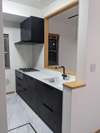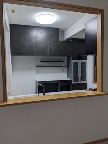 江戸川区でクロス張替え、リフォーム工事を得意とする㈲イシダインテリアです!江戸川区在住築25年程の戸建て住宅のお客様からのご依頼です。リビングの隣にあるキッチンは入口が狭く、閉鎖的なので「家事をしながらテレビが見られる開放的なキッチンにしたい」とのご要望でした。