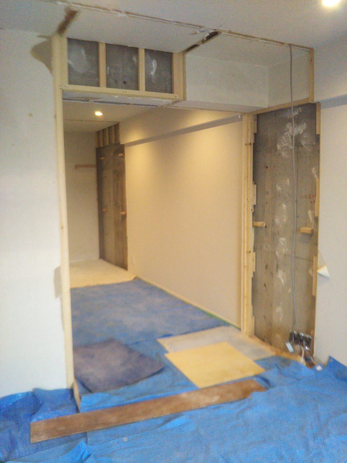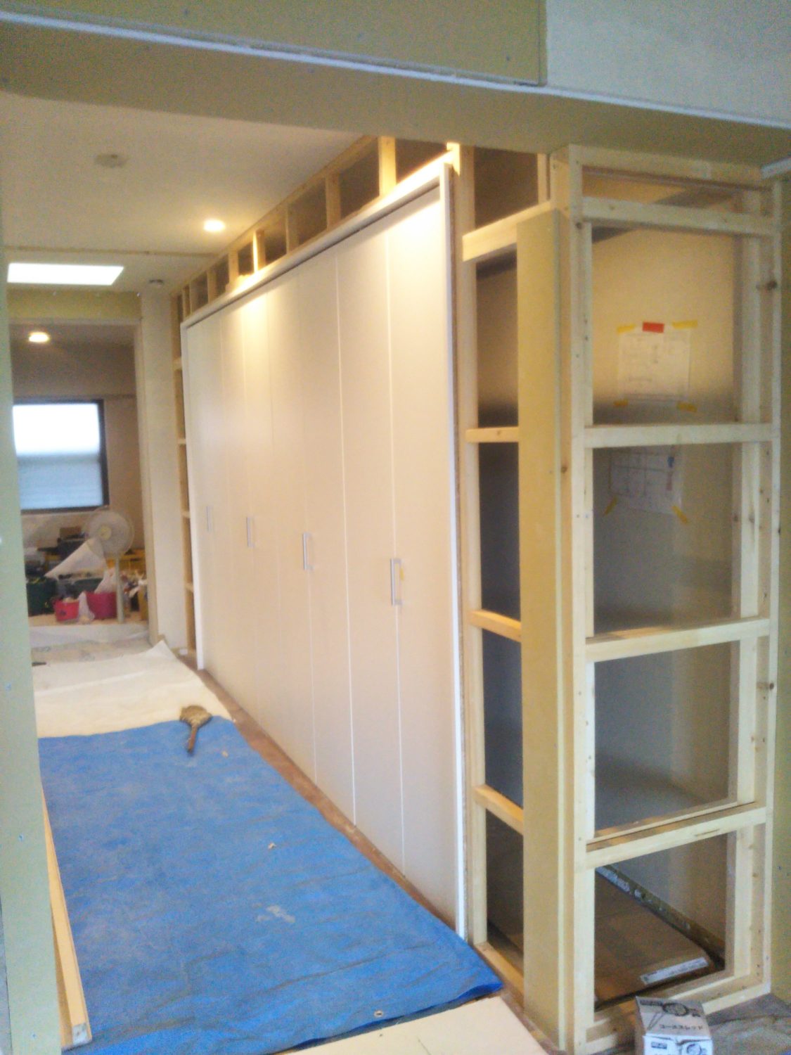 まず、中の荷物を片付けてもらい棚と建具、枠を撤去します。